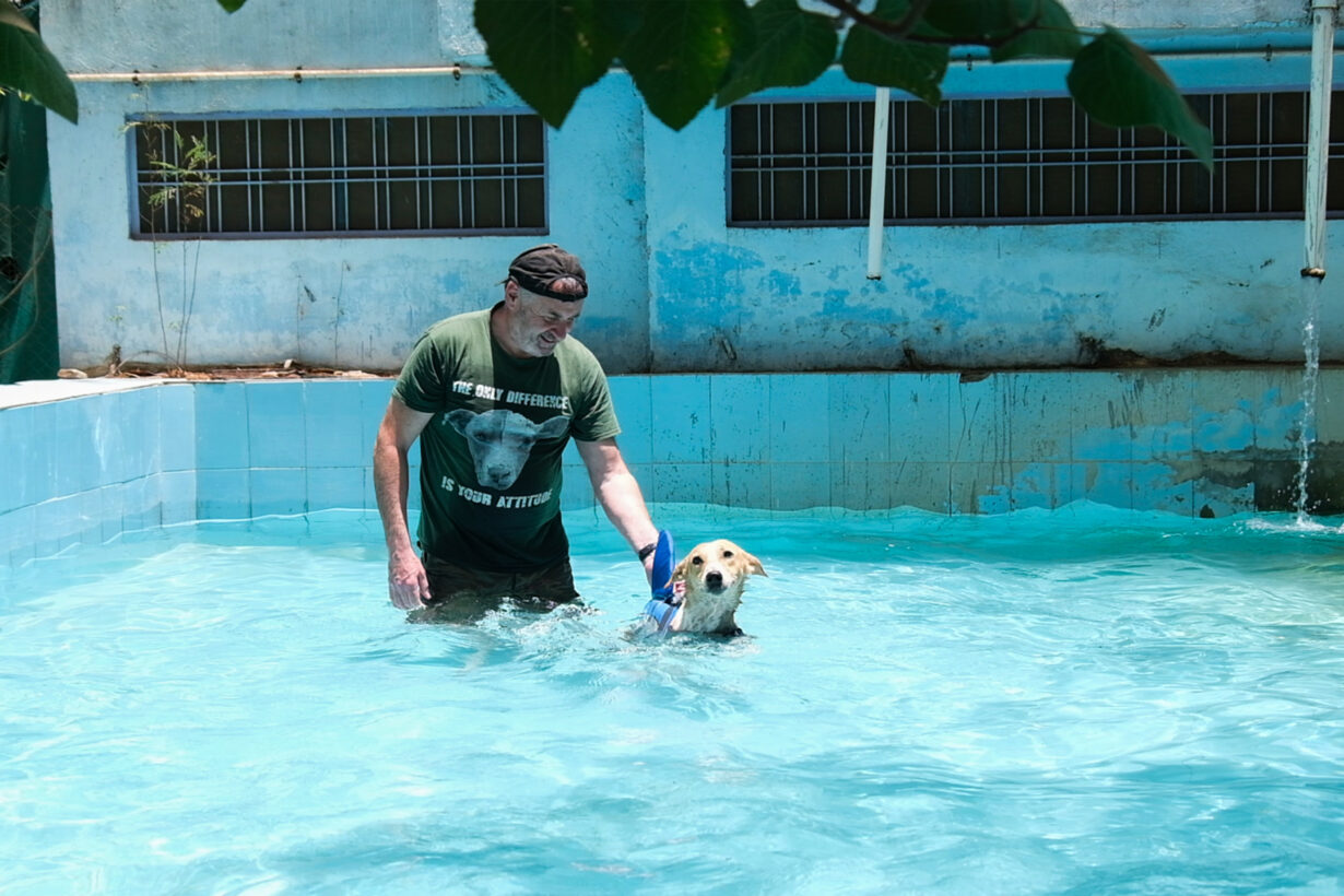 Gorgeous and playful Champ came to us with a hind leg swollen to twice its size, laying hidden away with a broken hip and very damaged spine. It took months of physiotherapy, hydrotherapy, and oodles of love before Champ was even able to stand. But once he could stand again, he decided it wasn’t enough, and a wobbly walk turned into a twisty, hurrying, rolling, running sprite.