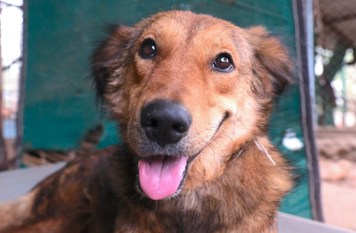 Hopper is a wobbly and loveable survivor of a serious spine injury. Rescued in 2023 from a sewage drain where he lay unable to stand in the frigid water, Hopper’s desperate eyes pleaded for help. Today he’s a rambunctious team leader, an irresistible play-boy whose love of life helped him beat incredible odds.